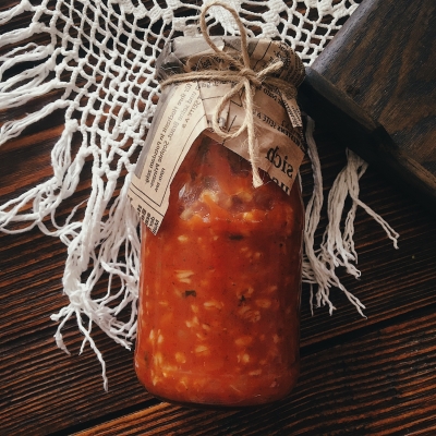 Стеклянная банка - 0,5 л. Степень остроты средняя.