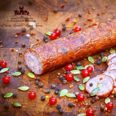 Сыровяленая колбаса из свинины с паприкой. Средний вес - 250-300 гр.